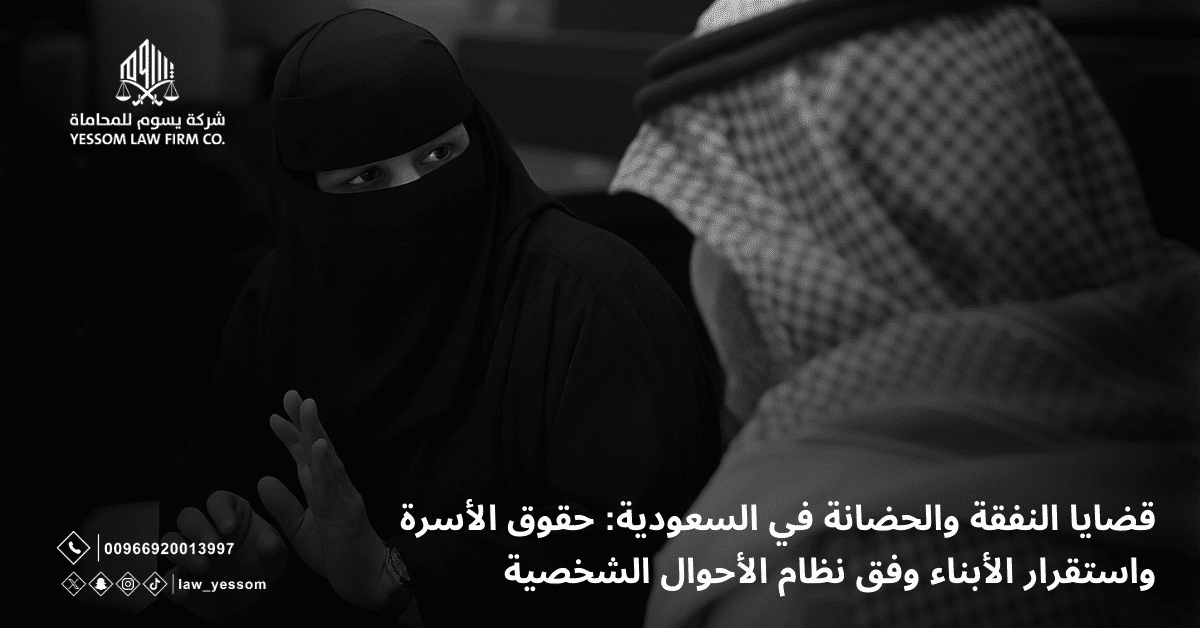 سلسلة يسوم قضايا النفقة والحضانة في السعودية: حقوق الأسرة واستقرار الأبناء وفق نظام الأحوال الشخصية تم النشر بواسطة شركة يسوم شركة يسوم 2025-12-02 0 قضايا النفقة و الحضانة في السعوديةتعد قضايا النفقة والحضانة في السعودية من أبرز قضايا الأحوال الشخصية التي ينظرها القضاء، نظرًا لارتباط... المزيد