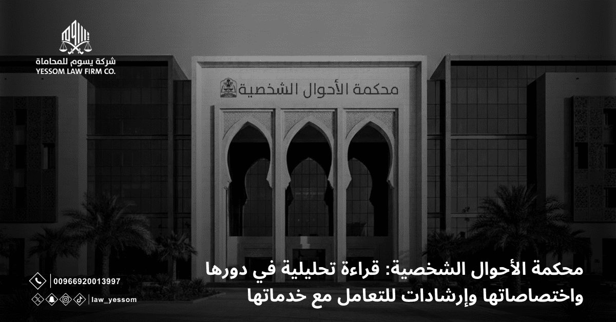 سلسلة يسوم محكمة الأحوال الشخصية: قراءة تحليلية في دورها واختصاصاتها وإرشادات للتعامل مع خدماتها تم النشر بواسطة شركة يسوم شركة يسوم 2025-11-25 0 من أهم المحاكم المتخصصة في المنظومة العدلية السعودية محكمة الأحوال الشخصية قراءة تحليلية في دورها واختصاصاتها وإرشادات لل... المزيد